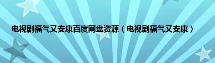 大家好,小问来为大家解答以上问题。电视剧福气又安康百度网盘资源,电视剧福气又安康这个很多人还不知道,现在让我们一起来看看吧!