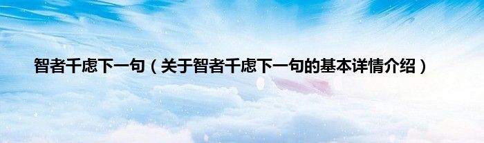 本文关于智者千虑下一句的基本详情介绍就讲解完毕,希望对大家有所帮助。