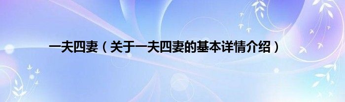 本文关于一夫四妻的基本详情介绍就讲解完毕,希望对大家有所帮助。