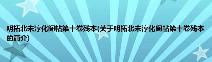 明拓北宋淳化阁帖第十卷残本(关于明拓北宋淳化阁帖第十卷残本的简介)