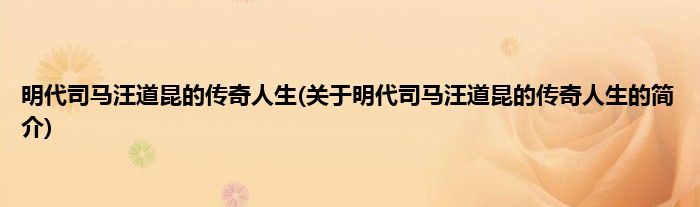 本文关于明代司马汪道昆的传奇人生的简介就讲解完毕,希望对大家有所帮助。