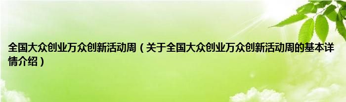 本文关于全国大众创业万众创新活动周的基本详情介绍就讲解完毕,希望对大家有所帮助。