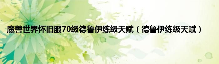 大家好,小问来为大家解答以上问题。魔兽世界怀旧服70级德鲁伊练级天赋,德鲁伊练级天赋这个很多人还不知道,现在让我们一起来看看吧!