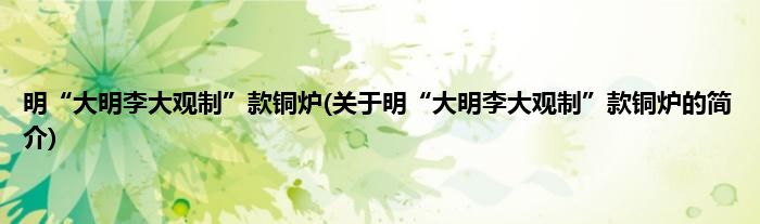 本文关于明“大明李大观制”款铜炉的简介就讲解完毕,希望对大家有所帮助。
