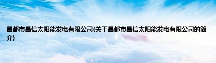 本文关于昌都市昌信太阳能发电有限公司的简介就讲解完毕,希望对大家有所帮助。