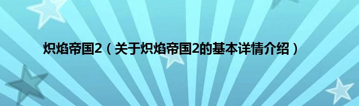 本文关于炽焰帝国2的基本详情介绍就讲解完毕,希望对大家有所帮助。