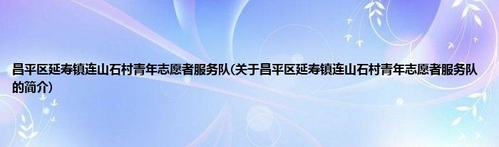 本文关于昌平区延寿镇连山石村青年志愿者服务队的简介就讲解完毕,希望对大家有所帮助。