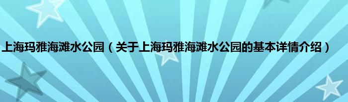 本文关于上海玛雅海滩水公园的基本详情介绍就讲解完毕,希望对大家有所帮助。