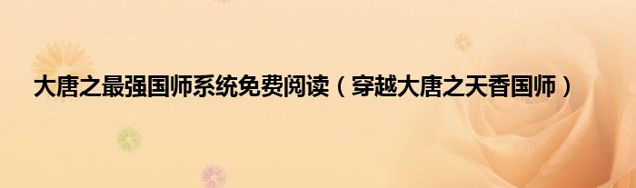 以上就是【大唐之最强国师系统免费阅读,穿越大唐之天香国师】相关内容。