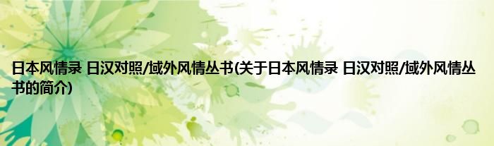 本文关于日本风情录 日汉对照/域外风情丛书的简介就讲解完毕,希望对大家有所帮助。