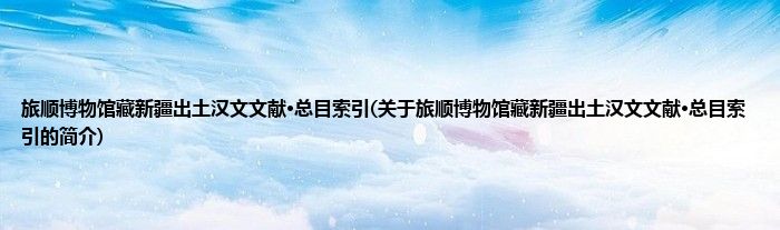 本文关于旅顺博物馆藏新疆出土汉文文献·总目索引的简介就讲解完毕,希望对大家有所帮助。