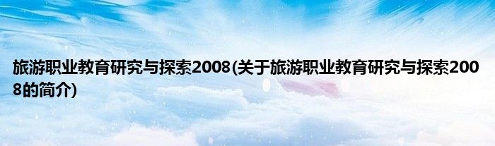 3、《旅游职业教育研究与探索2008》适用于广大旅游专业的读者阅读。