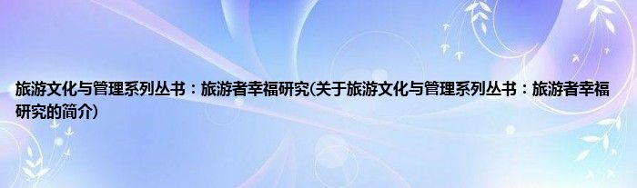 本文关于旅游文化与管理系列丛书:旅游者幸福研究的简介就讲解完毕,希望对大家有所帮助。