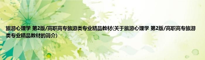 1、 《旅游心理学(第2版)/高职高专旅游类专业精品教材》是2013年清华大学出版社出版的图书。