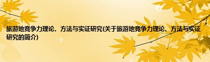 大家好,旅游地竞争力理论、方法与实证研究,关于旅游地竞争力理论、方法与实证研究的简介很多人还不知道,现在让我们一起来看看吧!