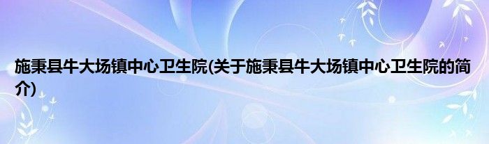 本文关于施秉县牛大场镇中心卫生院的简介就讲解完毕,希望对大家有所帮助。