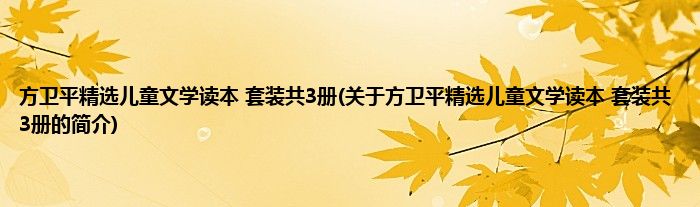本文关于方卫平精选儿童文学读本 套装共3册的简介就讲解完毕,希望对大家有所帮助。