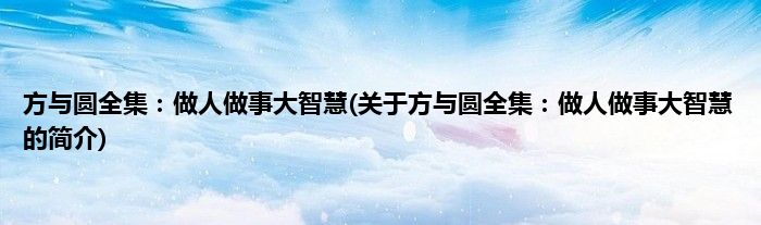 本文关于方与圆全集:做人做事大智慧的简介就讲解完毕,希望对大家有所帮助。