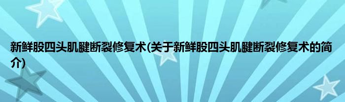大家好,新鲜股四头肌腱断裂修复术,关于新鲜股四头肌腱断裂修复术的简介很多人还不知道,现在让我们一起来看看吧!