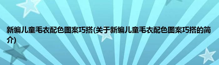 本文关于新编儿童毛衣配色图案巧搭的简介就讲解完毕,希望对大家有所帮助。