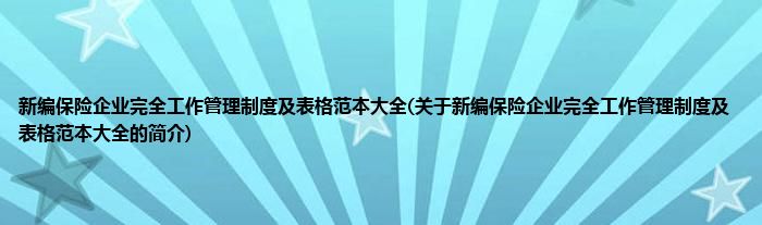 本文关于新编保险企业完全工作管理制度及表格范本大全的简介就讲解完毕,希望对大家有所帮助。