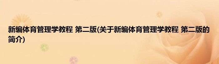 大家好,新编体育管理学教程 第二版,关于新编体育管理学教程 第二版的简介很多人还不知道,现在让我们一起来看看吧!