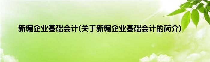 本文关于新编企业基础会计的简介就讲解完毕,希望对大家有所帮助。