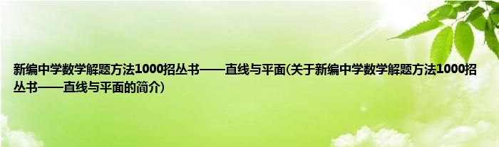 本文关于新编中学数学解题方法1000招丛书——直线与平面的简介就讲解完毕,希望对大家有所帮助。