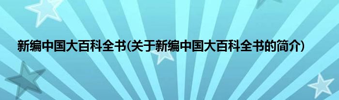 本文关于新编中国大百科全书的简介就讲解完毕,希望对大家有所帮助。