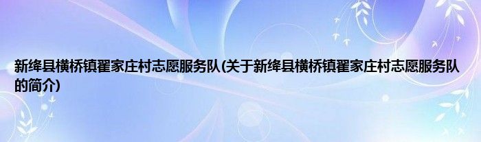 1、 新绛县横桥镇翟家庄村志愿服务队是由新绛县志愿服务联合会领导下的志愿团体。