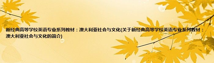 1、 《新经典高等学校英语专业系列教材:澳大利亚社会与文化》是2011年外语教学与研究出版社出版的图书。