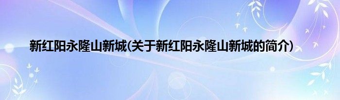 大家好,新红阳永隆山新城,关于新红阳永隆山新城的简介很多人还不知道,现在让我们一起来看看吧!