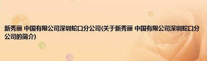 本文关于新秀丽 中国有限公司深圳蛇口分公司的简介就讲解完毕,希望对大家有所帮助。