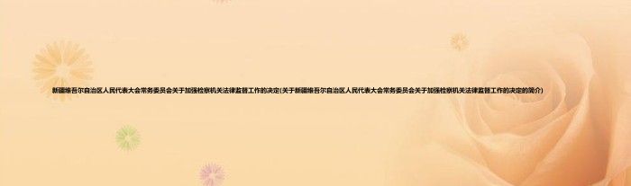 大家好,新疆维吾尔自治区人民代表大会常务委员会关于加强检察机关法律监督工作的决定,关于新疆维吾尔自治区人民代表大会常务委员会关于加强检察机关法律监督工作的决定的简介很多人还不知道,现在让我们一起来看看吧!