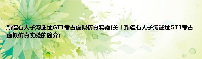本文关于新疆石人子沟遗址GT1考古虚拟仿真实验的简介就讲解完毕,希望对大家有所帮助。