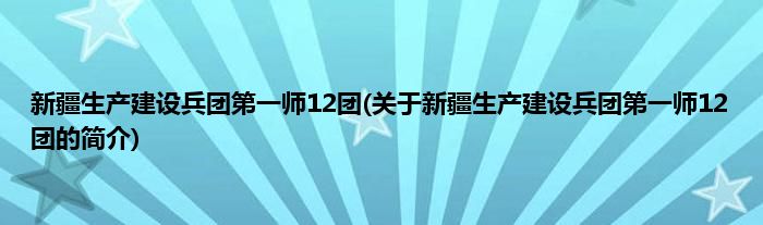 大家好,新疆生产建设兵团第一师12团,关于新疆生产建设兵团第一师12团的简介很多人还不知道,现在让我们一起来看看吧!