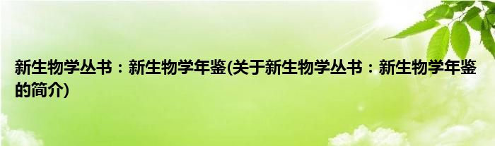 本文关于新生物学丛书:新生物学年鉴的简介就讲解完毕,希望对大家有所帮助。