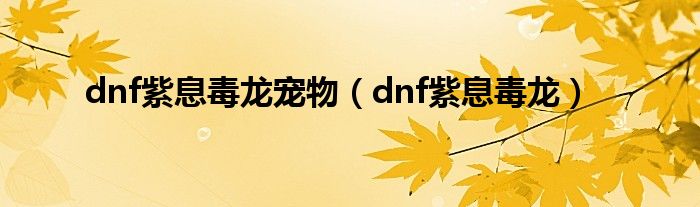大家好,小问来为大家解答以上问题。dnf紫息毒龙宠物,dnf紫息毒龙这个很多人还不知道,现在让我们一起来看看吧!