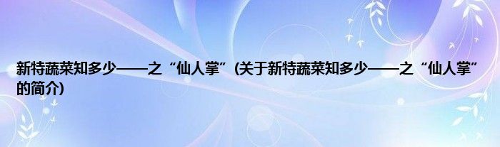 本文关于新特蔬菜知多少——之“仙人掌”的简介就讲解完毕,希望对大家有所帮助。