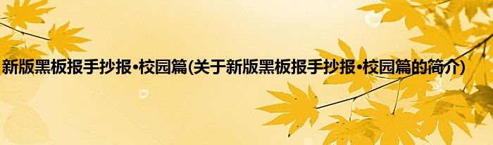 本文关于新版黑板报手抄报·校园篇的简介就讲解完毕,希望对大家有所帮助。