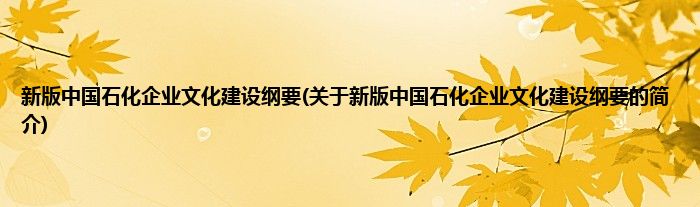 大家好,新版中国石化企业文化建设纲要,关于新版中国石化企业文化建设纲要的简介很多人还不知道,现在让我们一起来看看吧!