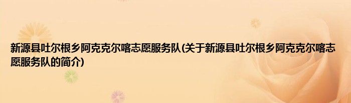 本文关于新源县吐尔根乡阿克克尔喀志愿服务队的简介就讲解完毕,希望对大家有所帮助。