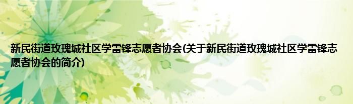 本文关于新民街道玫瑰城社区学雷锋志愿者协会的简介就讲解完毕,希望对大家有所帮助。