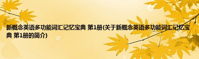 本文关于新概念英语多功能词汇记忆宝典 第1册的简介就讲解完毕,希望对大家有所帮助。