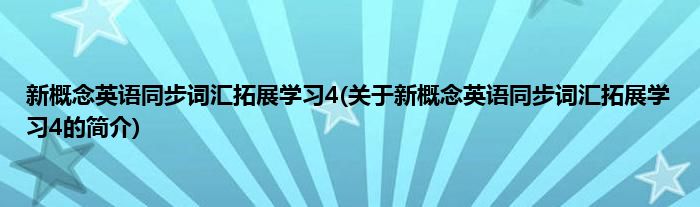大家好,新概念英语同步词汇拓展学习4,关于新概念英语同步词汇拓展学习4的简介很多人还不知道,现在让我们一起来看看吧!