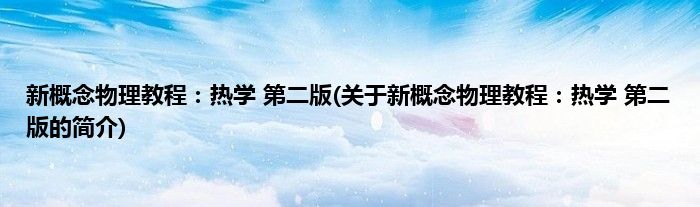 本文关于新概念物理教程:热学 第二版的简介就讲解完毕,希望对大家有所帮助。