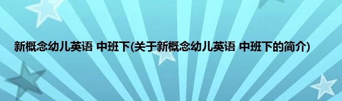 本文关于新概念幼儿英语 中班下的简介就讲解完毕,希望对大家有所帮助。
