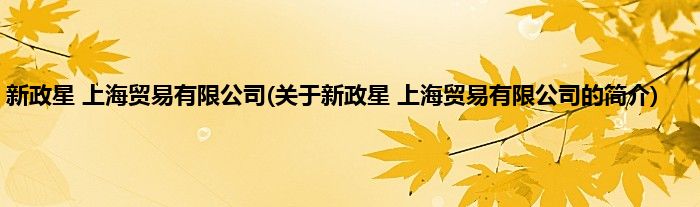 本文关于新政星 上海贸易有限公司的简介就讲解完毕,希望对大家有所帮助。