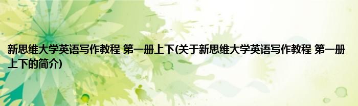 本文关于新思维大学英语写作教程 第一册上下的简介就讲解完毕,希望对大家有所帮助。