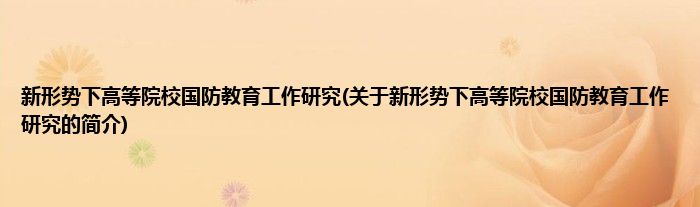 新形势下高等院校国防教育工作研究(关于新形势下高等院校国防教育工作研究的简介)